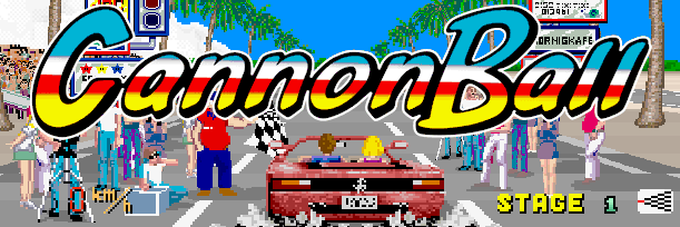Now ported to the Commodore 64 computer by just running the original arcade game program on the C64. The arcade machine's video and sound hardware are emulated by specific C64 routines. Played with the joystick instead of the original's steering, gear shift, and accelerator pedal.