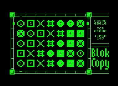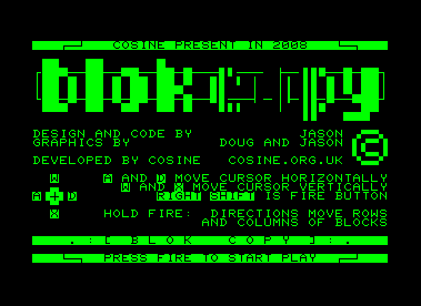 Apparently the documentation says that Blok Copy was the first release from Cosine on the Commodore PET. It also says PETs fitted with a parallel port sound hack get titles music, and in-game effects and jingles. Sadly to test this I had to run the game under VICE as the sound is enabled by default in the emulator but not on my PET.