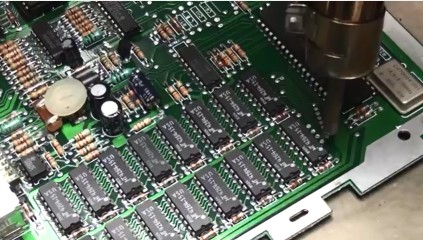 Clay Cowgill has created a demonstration video about removing chips from a circuit board using a Hakko 850 hot air system to remove the DIP chips from a two-layer printed circuit board from the year 1987 (Atari 130XE)