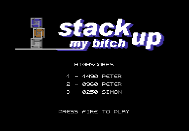 An interestingly titled game, the object of this game (played with the joystick) is to click the fire button to stop the left to right scrolling block and stack them one on the other. It’s more just a case of clicking the joystick button at the right time.