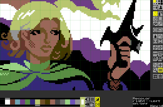 Meant to encourage a way of creating 8bit pixel images in direct dialogue with the colour limitations of the target platform. 8-bit visuals are often defined by a presence of a colour grid which is coarser than the actual pixel resolution, which is quite low to begin with. Working with and around these limits often means trying out a variety of approaches as you go along.