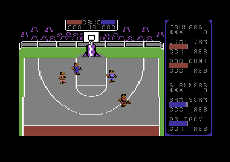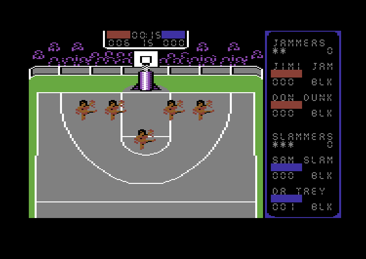 Sound effects are ball bounces, some white noise for the shooting, and crowd cheering. The temptation to add a techno soundtrack during the game happily hasn’t entered the programmer's mind, thank goodness! But what can you add to a basketball game in the sounds department? The crowd flashes their cameras during key moments which is a nice effect, and the ceremonies and presentations add some more interest. When you score the winning team gets a band of colour showing who won the point at the bottom of the screen, but the stats are constantly shown on the right hand side, so there is no question of who is winning.