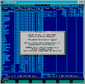 The Star Commander is the ultimate DOS shell that can handle the image file formats of the C64 Software Emulator (© by Miha Peternel, 1994-1997), CCS64 (© by Per Håkan Sundell, 1996-2009), Personal C64 (© by Wolfgang Lorenz, 1994-1997) and VICE (© by the VICE Team, 1993-2009), it copies files and disks between the PC and a Commodore 1541/1570/1571/1581 drive, optionally in turbo mode, and also converts several popular Commodore archive formats. It is a comfortable, user-friendly and fast giftware software with online help and is very similar to The Norton Commander (© by Symantec Inc., 1986-1995) and The Volkov Commander (© by Vsevolod V. Volkov, 1991-2000).