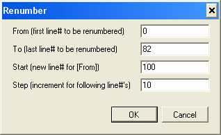 Here we can select the line to start renumbering from the last line we want to renumber to and the increments, the program also changes the goto statements to ensure the whole application will still run.