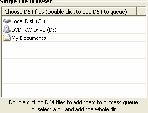 Once you navigate to your D64 you can now DOULBE click on the D64 and the files will be read and displayed on the left hand pain, clicking once will display the file contents but won’t actually load the file for conversion