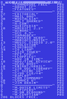 C:\Commodore Files\Commodore Stuff\Commodore_FREE_Website\magazine\vol4\issue41.d64: __________________________ 0 C< FREE 41 2A __________________________ 76 COMMODORE FREE PRG 4 ABOUT CF PRG 4 FEATURES PRG 22 EDITORIAL PRG 9 MAIL BAG PRG 30 NOSTALGIA PRG 3 WALT HARNED PRG 8 A-EON PRG 2 WIKIPEDIA PRG 10 AMIGIFT 2.1 PRG 3 WINUAE PRG 3 GCC 4.5 PRG 3 SAM460EX PRG 4 TRACKER HERO PRG 4 MANIACS/NOISE PRG 13 MUSIC STUDIO 2.0 PRG 3 EVOLUTION PRG 12 EQUINOXE PRG 34 IV LIAM PRG 4 C128 TOWER PRG 3 PET CPU PRG 4 FLOPPIES PRG 4 ADV IN TIME PRG 18 ADV/TIME REVIEW PRG 4 GEOS BOOT PRG 10 KNIGHT/GRAIL PRG 15 128 VDC LIBRARY PRG 3 C< SCENE 16 PRG 6 C+VG C16/+4 PRG 3 R3PLAY PRG 9 CBM COMMAND PRG 20 COMVEX 6 PRG 75 JIM BRAIN PRG 7 M.OUTER LIMITS PRG 2 M.PIPERS PRG 7 M.ON REBOUND PRG 6 M.EGYPTIAN PRG 206 BLOCKS FREE. __________________________ [ Created by NJAD64V v1.1 - 27 Oct 2010 - Stone Oakvalley Studios ]