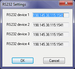 Basically, VICE allows you to have multiple "virtual" RS-232 ports, but only one can be selected at any given time. Here, I have the same IP Address and Port for all four devices, but you really only need to choose one. You must use the IP Address and port, as shown in this picture. Do not use the domain name because VICE will not recognize it properly. When finished, click OK.