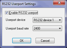 In the dialog, ensure that the "Enable RS-232 userport" checkbox is enabled and select the userport device number you set in Step 2 above.
