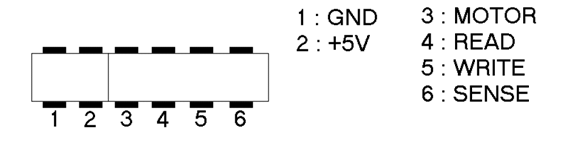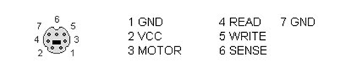 The communication signals of these connectors are GND, VCC, Motor, Read, Write and Sense: