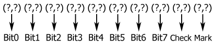 Each byte is coded using ten pairs of pulses: the new data mark, eight pairs of pulses representing the eight bits and a pair of checksum pulses (this information is the XOR operation of all the bits transmitted in the byte 1 xor bit0 xor bit1 xor bit2 …. ). Figure 6 shows an example.