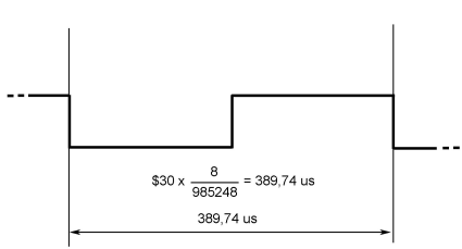 Pulse_length = 48($30) * ( 8 / 985248 ) = 389.74 µs