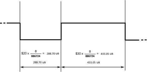 HighPulse_length = 48 ($30) * ( 8 / 886724 ) = 433.05 µs