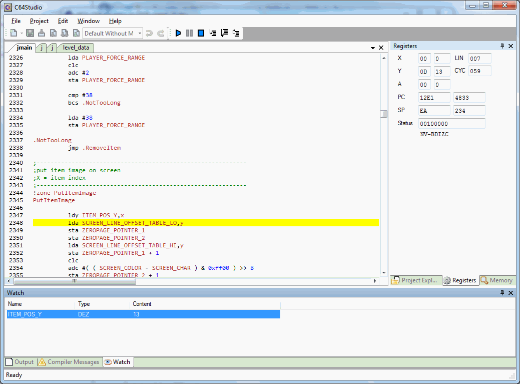 In connection with Vice the IDE allows you to debug through your code and watch variables/memory locations, registers and memory. Any other emulator can be set up as well if it's start able via runtime arguments.