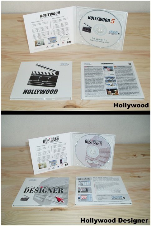 Hollywood 5: Infinity is the ultimate Multimedia experience and a must-have for all creative people. Hollywood is available on a CD-ROM and as a download version for AmigaOS compatible systems and for Microsoft Windows. The CD-ROM version is delivered in a nice Digipak (see photo). If you order the download version, you will have to download an ISO image which you need to burn on CD-R then. If you already own Hollywood, you can buy a discounted upgrade version. Customers, who have bought Hollywood 4.8 after January 1st, 2012, can apply for a free upgrade. Screenshots of Hollywood 5 are available on the Airsoft Software homepage.