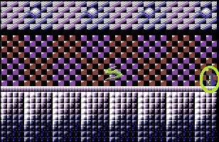 With some very squelchy square wave music – and a bouncy melody line, you can see this is a SEUCK from the information menu or title screen.