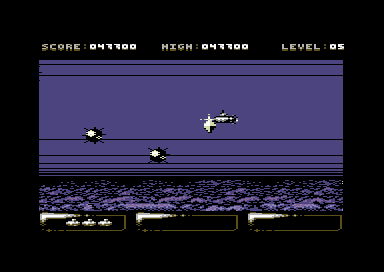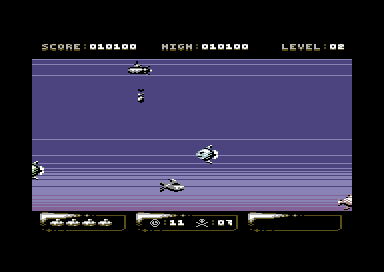Aqua landing: Carefully land your sub to the ground surface underwater, and rescue the swimmers that fall to the bottom of the water. Then carefully make your way back to the top of the surface. During this phase, you will have to watch out for running out of oxygen, and of course avoid getting killed by the swarms of enemies.