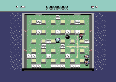 You play a Bomber man who has to move around the screen and blow enemies up with the bombs. The only trouble is that the enemies won't keep still. There are walls in your way and also you could drop a bomb and blow yourself up instead. Precise timing is needed so watch your step. As soon as all enemies have been destroyed, locate the exit – by blowing up more walls and flee to it before time runs out.