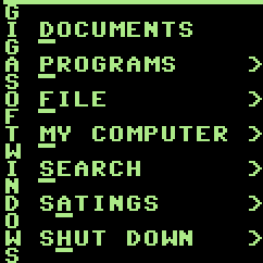 The desktop and start menu, also a DOS, Corel Draw, Notepad, Writepad, Documents , Excel some games