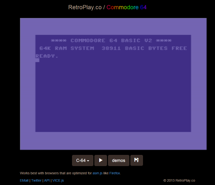 Richard Janicek has a website with the VICE emulator available to play online. this emulator uses JavaScript and should work on most modern browsers. Future updates will add joystick and gamepad support, as well as being able to support other Commodore computers.