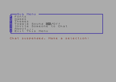 This version of chat allows you to load different fonts from the Internet. At 38K speeds, it is incredibly quick. As the online disk grows with more fonts, your choices will be greater for displaying text. It also allows you to launch games directly from the chat app. This is nice, because as you're chatting, you'll not only see the games that people launch, but also be able to join them quickly.