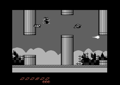 Using a joystick in either port, help Zappy fly across poor Flappy's world fighting back against the evil retro characters and the evil witches. Watch out for their deadly bullets. Collect black crosses to gain extra points with a possibility of an extra life for every 10,000 points scored.