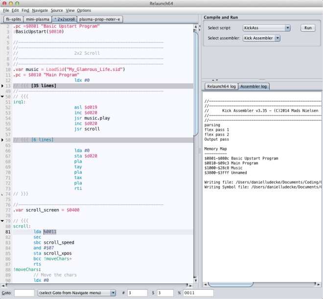 Relaunch64 is an IDE (text-editor) for C64 assembler-coding on Windows, Linux and Mac OS X. Relaunch64 has a clean and intuitive user interface, yet it offers many features that make coding faster and easier.