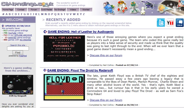 A web page devoted to Commodore 64 game endings, if you have ever wondered how a game ends then it could be on this website.