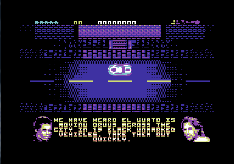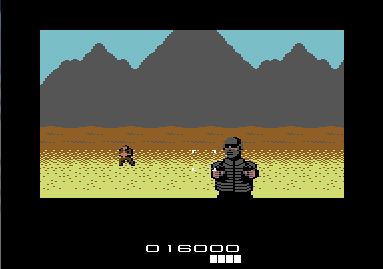 Oh, this is interesting, again. The splash screen and intro music are super cool, the in-game has a gun sight, and the terrain scrolls from left to right as various enemies appear, with a helicopter and various army dudes intent on killing you. Some have bullet proof vests, but they do still die! You move the gun sight and press Fire. Not too taxing, and it would be better if you controlled the scrolling and could go both left and right, but we are stuck in the SEUCK limitations here. In-game sounds are just the gunfire.