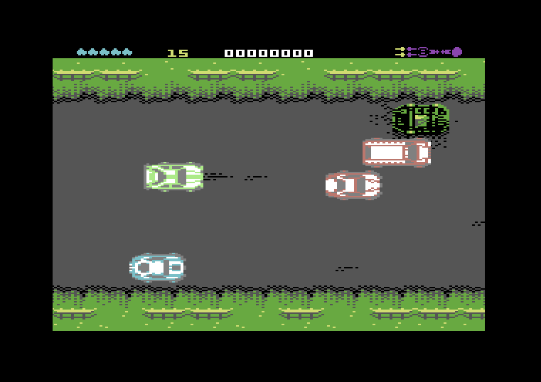 Not too bad really. It’s a top-down Spy Hunter-style game, and if anything this does suffer from “too much on screen” syndrome and SEUCK cant handle too many things at once so it slows down. It's quite noticeable on this game, but doesn’t really destroy it. The loading screen and music are amazing and the “Get Ready” dancing squares are very cool, simple but effective; not sure how they tie in with the game though. The in-game music doesn’t seem to fit; it's OK but in the wrong game. Bonuses to collect and clever split-screen game play make this stand out from the mediocre – but only just.