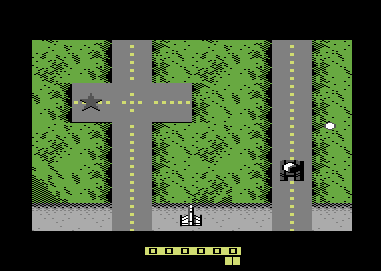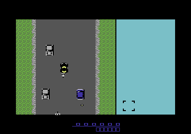 Your joystick controls both your car and a gun-sight. The gun-sight can shoot down enemy helicopters.