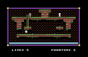 The game looks like a standard old-school, 8-bit “collect items” platformer. However, looks can be deceiving, and the clever part to this game is that you also control a phantom version of yourself on the opposite side of the screen. When the hero moves, the alter ego moves too, but in a mirrored fashion. In some levels the movements are mirrored horizontally; in others they are mirrored vertically. You can switch at anytime between the hero and his alter ego by pressing the Fire button. You are limited on the number of swaps on each level, and this number of swaps is shown on the bottom-right of the screen. There are evil skulls around, and you don't want to touch them or its life over, and do not fall into the water or outside of the level, or you'll also lose a life.