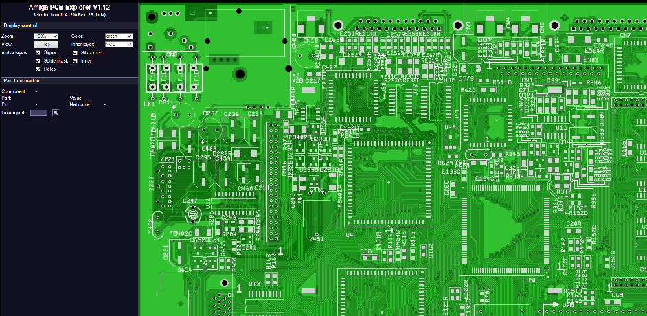 PCB Amiga Explorer is a web-based information system developed by Christian Euler. You can use this system in the repair of Amiga motherboards. At the moment is the lay of the A1200Rev 2B and A4000Rev 2.